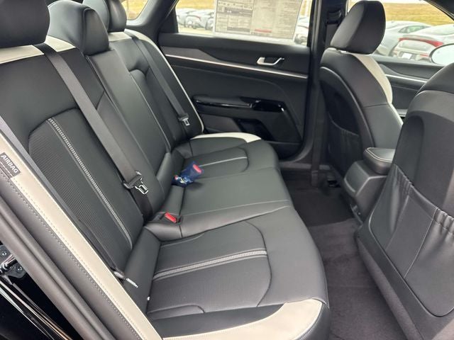 Under the hood, the K5 GT-Line houses a potent I4 engine mated to an 8-speed automatic transmission, delivering a seamless blend of power and efficiency. With an EPA-estimated 25 MPG in the city and 36 MPG on the highway, this sedan offers exceptional fuel economy, making it an ideal choice for those who value both performance and practicality.