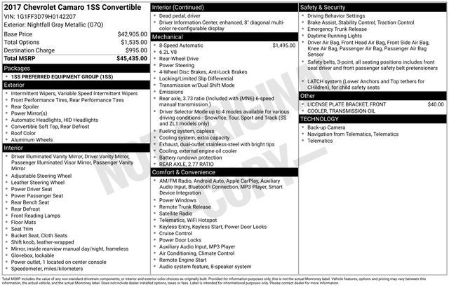 2017 Chevrolet Camaro SS 1SS