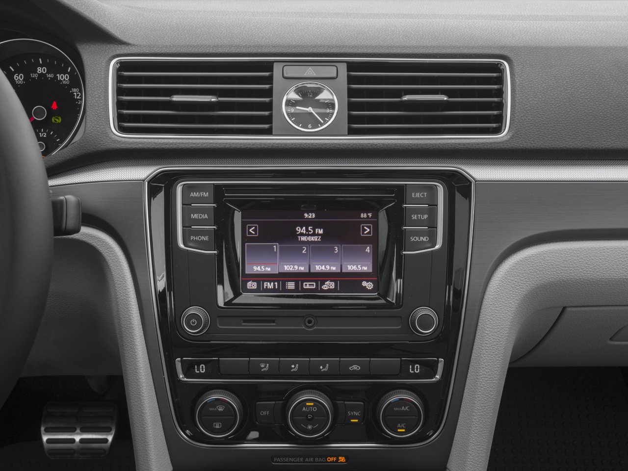 Step inside and you'll be greeted by a well-appointed cabin featuring premium V-Tex leatherette upholstery, heated front seats, and a Composition Media infotainment system with AM/FM radio, HD Radio, and a CD player. The power driver's seat, dual-zone automatic climate control, and leather-wrapped steering wheel add to the Passat's refined ambiance.