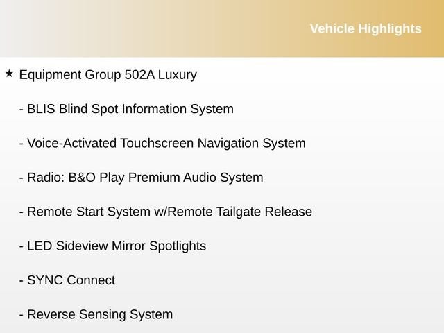 - Radio: AM/FM Stereo w/6 Speakers -inc: auxiliary audio input jack (not available w/SYNC)