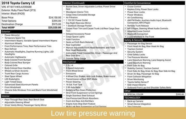 With its sleek exterior design and striking red color, this 2018 Toyota Camry LE is a true head-turner. Don't miss your chance to experience the perfect balance of style, technology, and efficiency. Schedule a test drive today and discover why the Camry continues to be a trusted and beloved choice among discerning drivers.