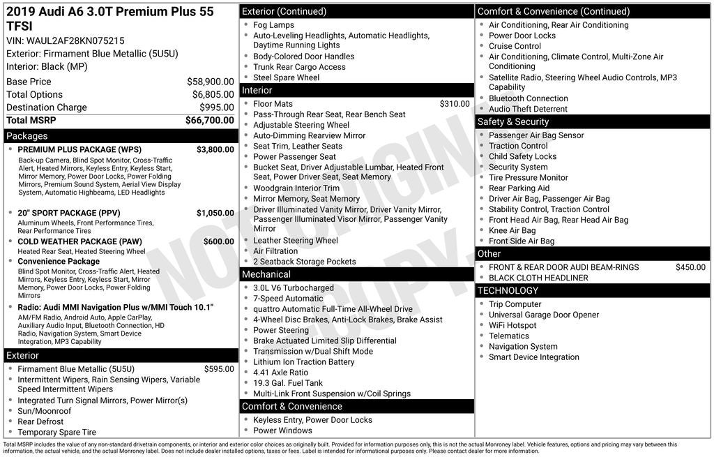 2019 Audi A6 3.0T Premium Plus quattro