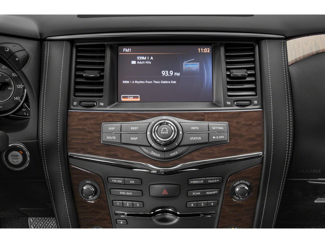 13 Speakers, 18 Alloy Wheels, 2.937 Axle Ratio, 2nd & 3rd Row Carpeted Mats, 3rd row seats: split-bench, 4-Wheel Disc Brakes, ABS brakes, Air Conditioning, Alloy wheels, AM/FM radio: SiriusXM, Anti-whiplash front head restraints, Auto-Dimming Interior Rear-View Mirror, Auto-leveling suspension, Automatic temperature control, Brake assist, Bumpers: body-color, CD player, Cloth Seat Trim, Delay-off headlights, Driver door bin, Driver Package, Driver vanity mirror, Dual front impact airbags, Dual front side impact airbags, Electronic Stability Control, Emergency communication system: NissanConnect Services, Four wheel independent suspension, Front anti-roll bar, Front Bucket Seats, Front Center Armrest, Front dual zone A/C, Front Fog Lights, Front reading lights, Fully automatic headlights, Heated Front Bucket Seats, HEATED FRONT SEATS, Illuminated entry, Leather Shift Knob, Low tire pressure warning, NAVIGATION, Occupant sensing airbag, Outside temperature display, Overhead airbag, Overhead console, Panic alarm, Passenger door bin, Passenger vanity mirror, Power 60/40 3rd Row Seat, Power door mirrors, Power driver seat, Power Lift Gate, Power passenger seat, Power steering, Power windows, Radio data system, Radio: AM/FM/SXM/CD/MP3/HD, Rear air conditioning, Rear anti-roll bar, Rear reading lights, Rear seat center armrest, Rear window defroster, Rear window wiper, Reclining 3rd row seat, Remote keyless entry, Roof rack: rails only, Security system, Speed control, Speed-sensing steering, Speed-Sensitive Wipers, Split folding rear seat, Spoiler, Steering wheel mounted audio controls, Tachometer, Telescoping steering wheel, Tilt steering wheel, Traction control, Trailer Towing Harness, Trip computer, Turn signal indicator mirrors, Variably intermittent wipers, Voltmeter.