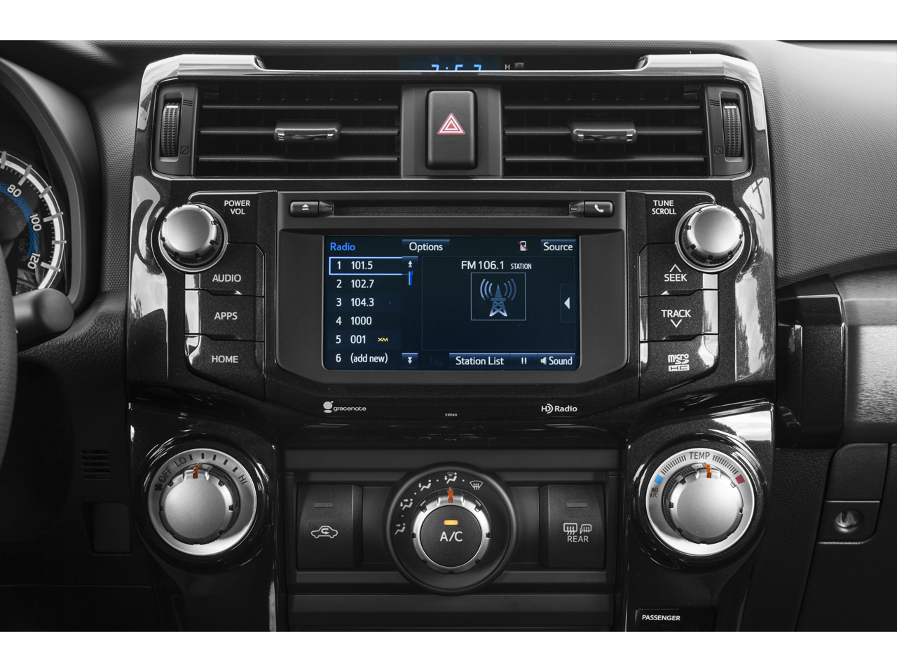 - Radio: Entune Premium Audio w/Navigation -inc: Entune App Suite, 6.1" high-resolution touch-screen w/split-screen display, AM/FM cache radio, HD Radio, CD player, 8-speakers, auxiliary port, USB 2.0 port w/iPod connectivity and control, advanced voice recognition, hands-free phone capability, phone book access and music streaming via Bluetooth wireless technology, Siri Eyes Free, HD Radio predictive traffic and Doppler weather overlay and SiriusXM satellite radio w/3-month all access trial Access to Entune services is subscription free. See toyota.com/entune for details.