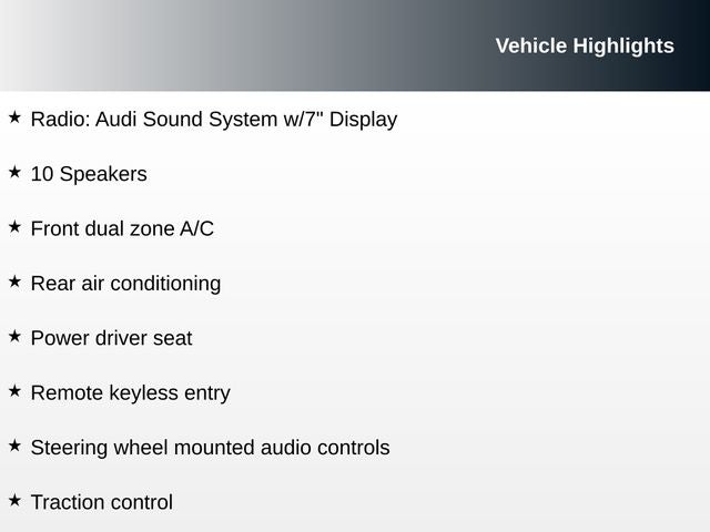 - Convenience Plus Package -inc: Audi Phone Box, Parking System Plus (Front/Rear Acoustic Sensors)