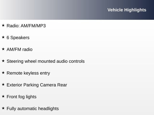 - Radio w/Seek-Scan, Clock, Aux Audio Input Jack, Steering Wheel Controls, Voice Activation and External Memory Control