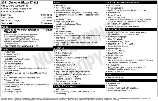 Discover the perfect balance of style, technology, and performance in this 2021 Chevrolet Blazer LT. Schedule a test drive today and experience the difference for yourself. We're confident you'll be impressed by the quality, features, and value this vehicle has to offer.