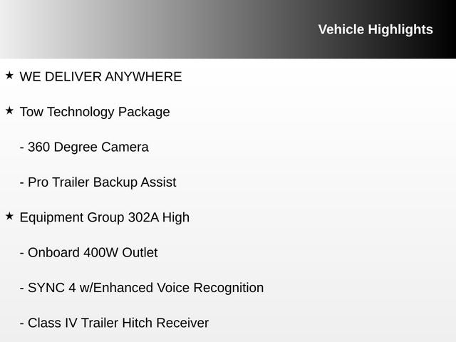 Rapid Red Metallic Tinted Clearcoat 2021 Ford F-150 XLT 4WD 10-Speed Automatic 5.0L V8 WE DELIVER ANYWHERE, 4WD, 10-Way Power Driver & Passenger Seats, 360 Degree Camera, 4x4 FX4 Off-Road Bodyside Decal, 8 Productivity Screen in Instrument Cluster, Class IV Trailer Hitch Receiver, Dual Zone Automatic Temperature Control, Electronic Locking w/3.31 Axle Ratio, Equipment Group 302A High, FX4 Off-Road Package, Heated Front Seats, Hill Descent Control, Integrated Trailer Brake Controller, Intelligent Access w/Push Button Start, Leather-Wrapped Steering Wheel, LED Box Lighting w/Zone Lighting, LED Reflector Headlamps, LED Sideview Mirror Spotlights, Monotube Rear Shocks, Off-Road Tuned Front Shock Absorbers, Onboard 400W Outlet, Power Glass Heated Sideview Mirrors, Pro Trailer Backup Assist, Rear Under-Seat Storage, Remote Start System w/Remote Tailgate Release, Rock Crawl Mode, SYNC 4 w/Enhanced Voice Recognition, Tow Technology Package, Tray Style Floor Liner, Wheels: 20 Chrome-Like PVD, XLT Chrome Appearance Package, 2-Bar Style Grille w/Chrome 2 Minor Bars, 4-Wheel Disc Brakes, 6 Speakers, ABS brakes, Air Conditioning, AM/FM radio, Auto High-beam Headlights, Auto-Dimming Rear-View Mirror, Brake assist, Bumpers: chrome, Chrome Door & Tailgate Handles w/Body-Color Bezel, Chrome Single-Tip Exhaust, Chrome Step Bars, Cloth 40/20/40 Front Seat, Compass, Delay-off headlights, Driver door bin, Driver vanity mirror, Dual front impact airbags, Dual front side impact airbags, Electronic Stability Control, Emergency communication system: SYNC 4 911 Assist, Extended Range 36 Gallon Fuel Tank, Exterior Parking Camera Rear, Front anti-roll bar, Front Center Armrest w/Storage, Front fog lights, Front reading lights, Front wheel independent suspension, Fully automatic headlights, Heated door mirrors, Illuminated entry, Interior Work Surface, Low tire pressure warning, Occupant sensing airbag, Outside temperature display, Overhead airbag, Overhead console, Panic alarm, Passenger door bin, Passenger vanity mirror, Power door mirrors, Power steering, Power windows, Pro Power Onboard - 2KW, Radio data system, Radio: AM/FM SiriusXM w/360L, Radio: AM/FM Stereo w/6 Speakers, Rear reading lights, Rear step bumper, Rear window defroster, Remote keyless entry, SecuriCode Drivers Side Keyless-Entry Keypad, Security system, Speed control, Speed-sensing steering, Split folding rear seat, Steering wheel mounted audio controls, SYNC 4, Tachometer, Tailgate Step w/Tailgate Work Surface, Telescoping steering wheel, Tilt steering wheel, Traction control, Tray Style Floor Liner (47W), Trip computer, Variably intermittent wipers, Voltmeter, 4WD, 10-Way Power Driver & Passenger Seats, 360 Degree Camera, 4x4 FX4 Off-Road Bodyside Decal, 8 Productivity Screen in Instrument Cluster, Class IV Trailer Hitch Receiver, Dual Zone Automatic Temperature Control, Electronic Locking w/3.31 Axle Ratio, Equipment Group 302A High, FX4 Off-Road Package, Heated Front Seats, Hill Descent Control, Integrated Trailer Brake Controller, Intelligent Access w/Push Button Start, Leather-Wrapped Steering Wheel, LED Box Lighting w/Zone Lighting, LED Reflector Headlamps, LED Sideview Mirror Spotlights, Monotube Rear Shocks, Off-Road Tuned Front Shock Absorbers, Onboard 400W Outlet, Power Glass Heated Sideview Mirrors, Pro Trailer Backup Assist, Rear Under-Seat Storage, Remote Start System w/Remote Tailgate Release, Rock Crawl Mode, SYNC 4 w/Enhanced Voice Recognition, Tow Technology Package, Tray Style Floor Liner, Wheels: 20 Chrome-Like PVD, XLT Chrome Appearance Package.