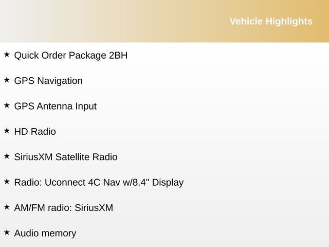 • Radio: Uconnect 4C Nav w/8.4 Display