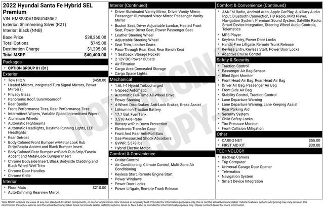 - Vehicle Name: Hyundai Santa Fe Hybrid