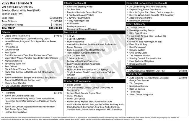 Discover the exceptional value and uncompromising quality of the 2022 Kia Telluride S. Experience the perfect blend of style, capability, and technology that will elevate your driving experience. Visit our showroom today and let us demonstrate why the Telluride S is the perfect SUV for you.