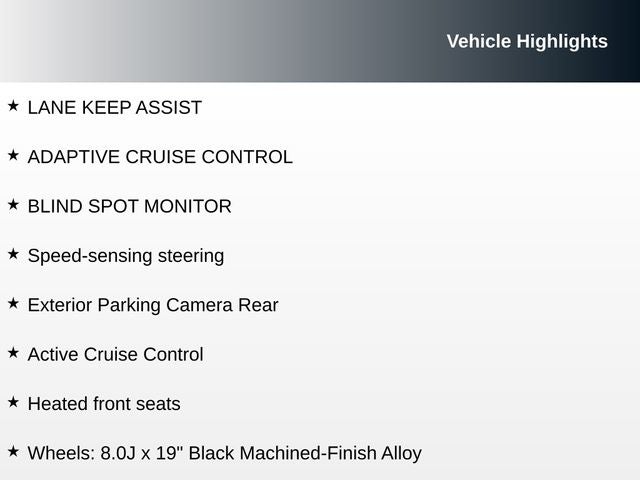 - Wheels: 8.0J x 19" Black Machined-Finish Alloy