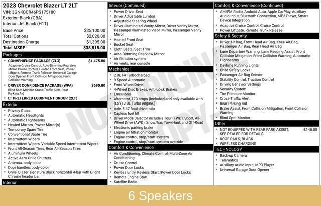 With its impressive list of features, the 2023 Chevrolet Blazer LT is designed to elevate your driving experience. Enjoy the convenience of the Convenience and Driver Confidence Packages, which include adaptive cruise control, wireless charging, and advanced safety technologies. The turbocharged engine delivers responsive acceleration, while the 9-speed automatic transmission provides smooth, efficient power delivery.