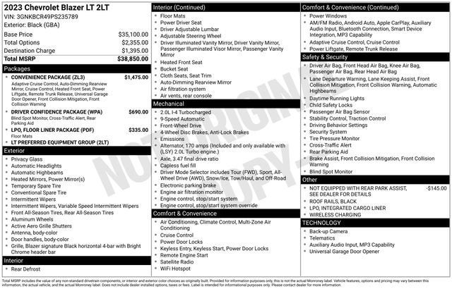 - which removes Rear Park Assist. Does not include later dealer retrofit. See dealer for details or the window label for the features on a specific vehicle.)