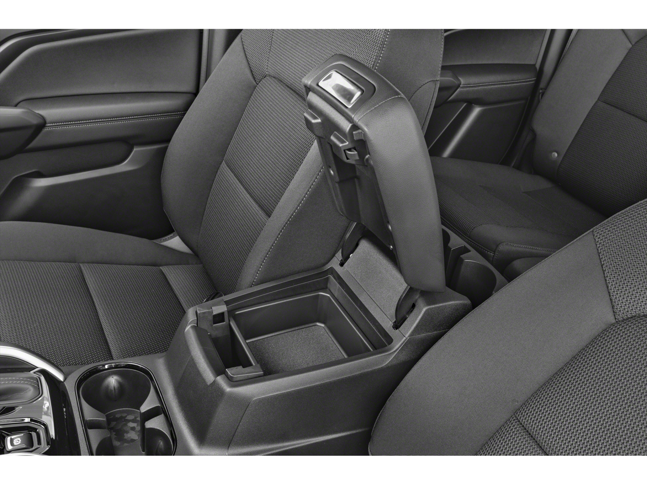 - Console, floor front compartment with cup holders and cell phone storage