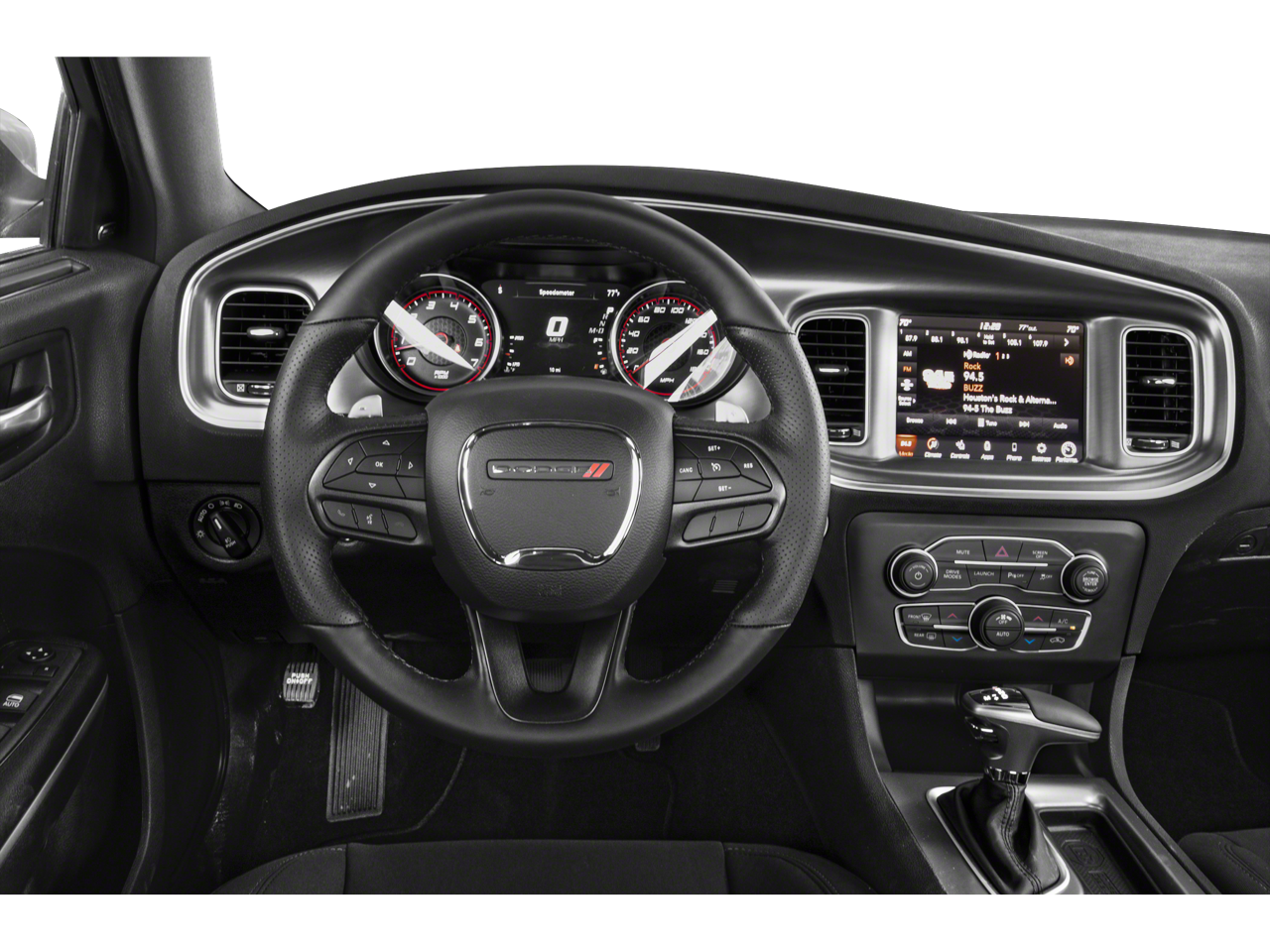 Inside, the Charger R/T Scat Pack Widebody's cabin is a perfect blend of style and comfort. The sport-inspired cloth performance seats with heating function keep you supported and comfortable, while the leather-wrapped steering wheel and shift knob add a touch of premium refinement.