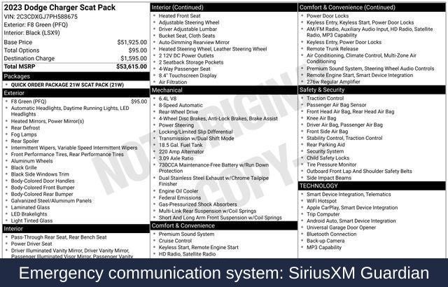 - Emergency communication system: SiriusXM Guardian
