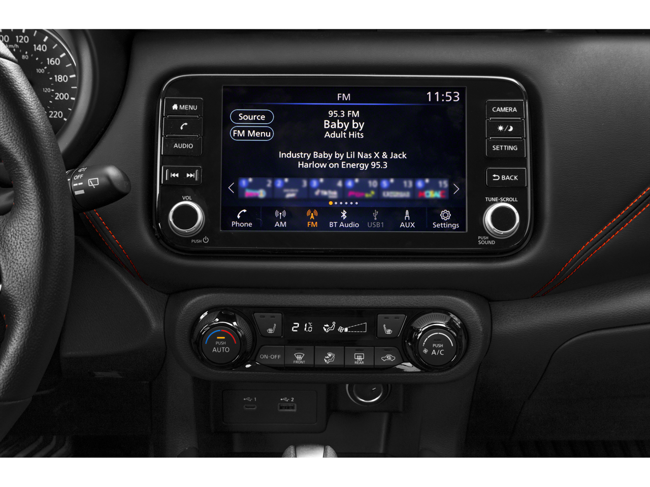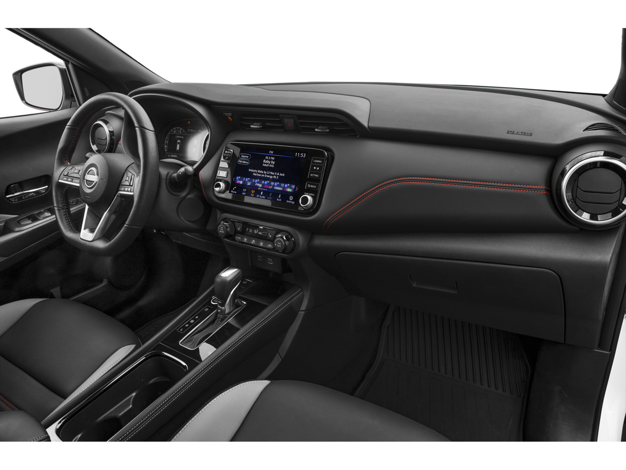 Step inside the Kicks SR, and you'll be greeted by a well-appointed interior that prioritizes both style and comfort. The Cloth Seat Trim and Front Center Armrest provide a cozy and supportive seating experience, while the Steering Wheel Mounted Audio Controls and Tilt/Telescoping Steering Wheel allow you to stay connected and in control.
