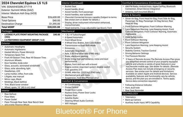 Don't miss your chance to experience the exceptional value and uncompromising quality of this 2024 Chevrolet Equinox LS. Visit our showroom today and let us demonstrate how this exceptional SUV can enhance your driving lifestyle.