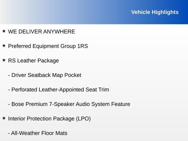 - Driver Convenience Package includes (BTV) Remote Start, (CJ2) dual-zone automatic climate control, (KA1) driver and front passenger heated seats, (N5F) wrapped steering wheel and (TB5) power liftgate.