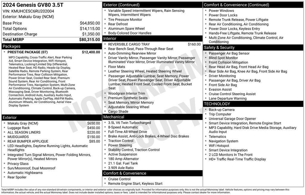 - Radio:14.5" Navigation System w/AM/FM/HD Radio -inc: SiriusXM Radio w/90-day subscription (not available in AK or HI), Apple CarPlay and Android Auto, 12 speakers, Bluetooth® hands-free phone system w/audio streaming, wireless phone charger, Wi-Fi hotspot, steering wheel controls, USB and Genesis Connected Services