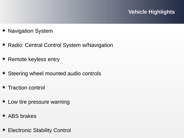 - Radio w/Seek-Scan, Clock, Aux Audio Input Jack, Steering Wheel Controls, Voice Activation and External Memory Control
