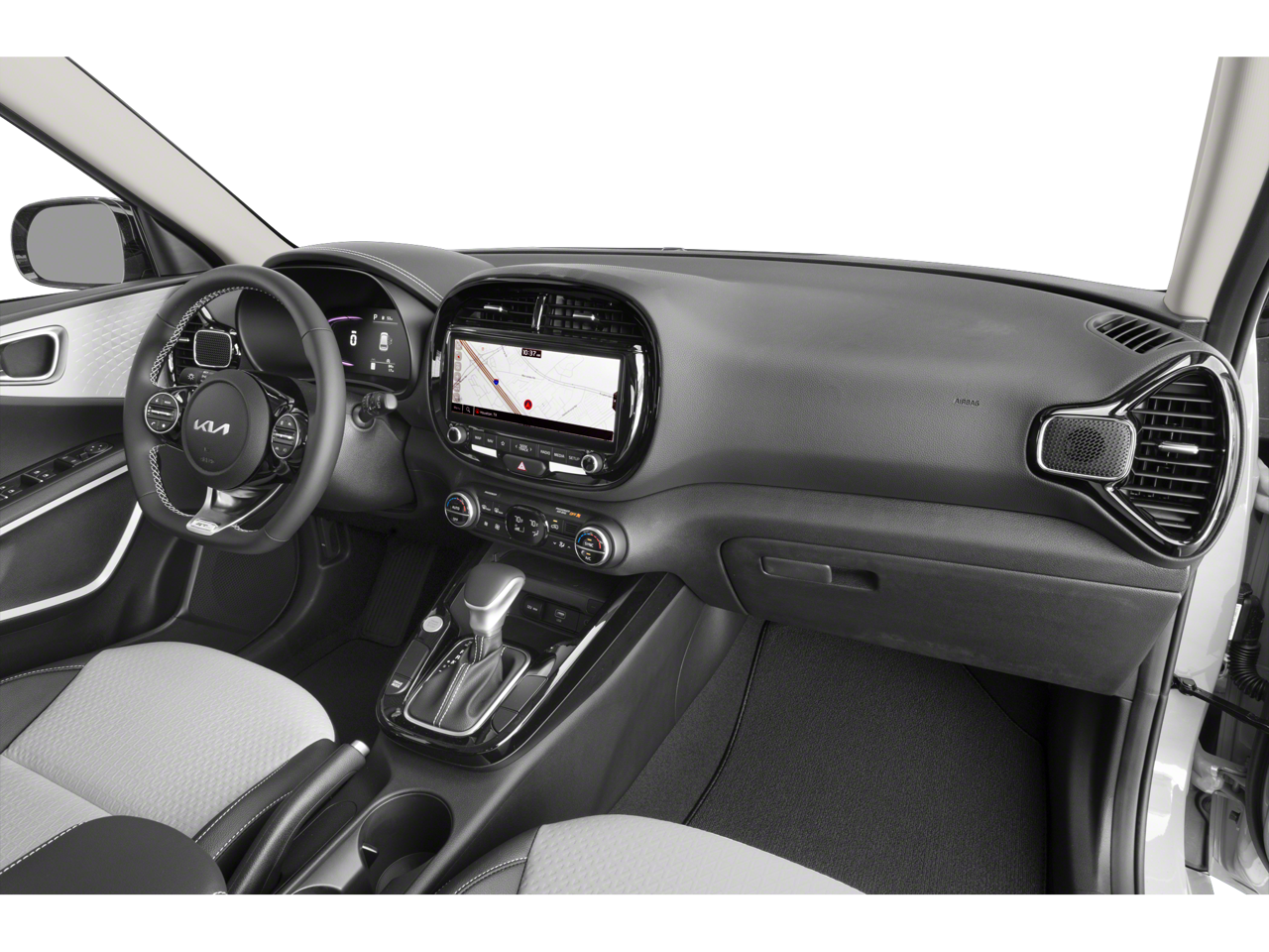 Step inside and you'll be greeted by a wealth of premium features, including a state-of-the-art navigation system, a power moonroof, and a stylish combination of cloth and artificial leather seating. The Black & White Interior Color Package and the GT-Line Designer Package add an extra touch of sophistication, while the 7.5J x 18 alloy wheels give the Soul a bold, sporty appearance.