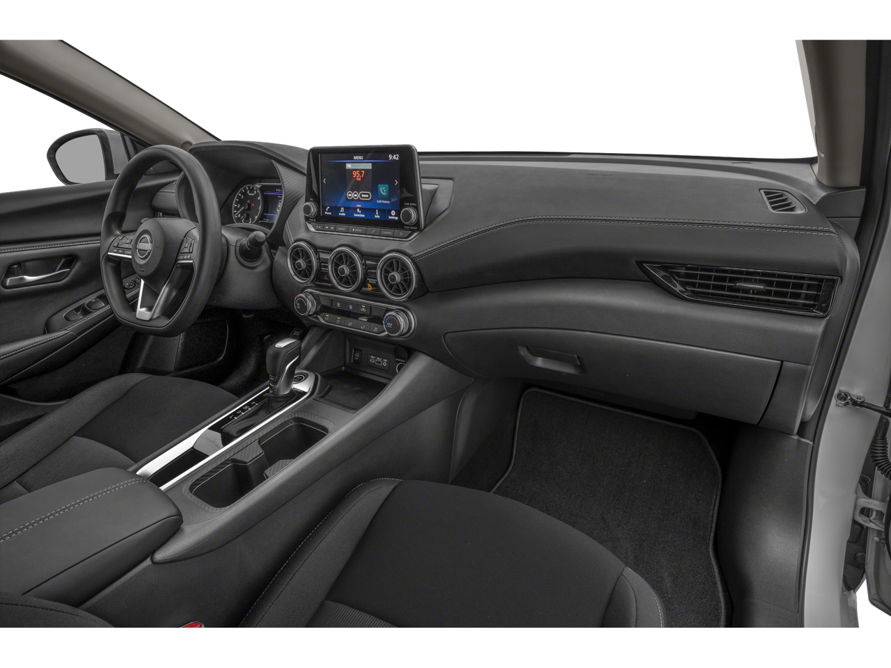 The interior of the Sentra SV is designed with your comfort and convenience in mind. Enjoy the convenience of keyless entry, power windows, and steering wheel-mounted audio controls. Stay connected with the NissanConnect system, featuring Apple CarPlay and Android Auto integration.