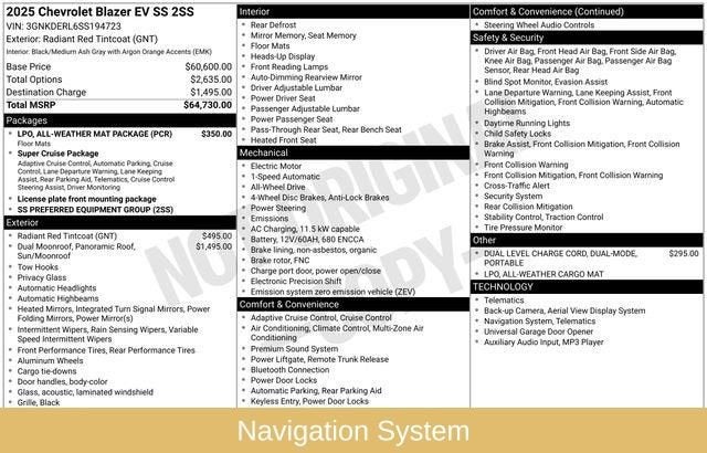Discover the perfect balance of style, technology, and capability in the 2025 Chevrolet Blazer EV SS. This exceptional SUV is waiting to elevate your driving experience. Visit our showroom today and let us demonstrate why this Blazer EV SS is the perfect choice for you.