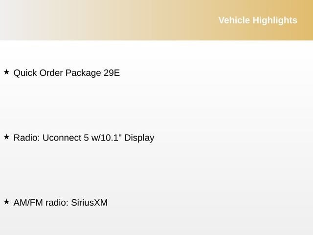 - UConnect 5 w/Seek-Scan, Clock, Aux Audio Input Jack, Steering Wheel Controls and Voice Activation