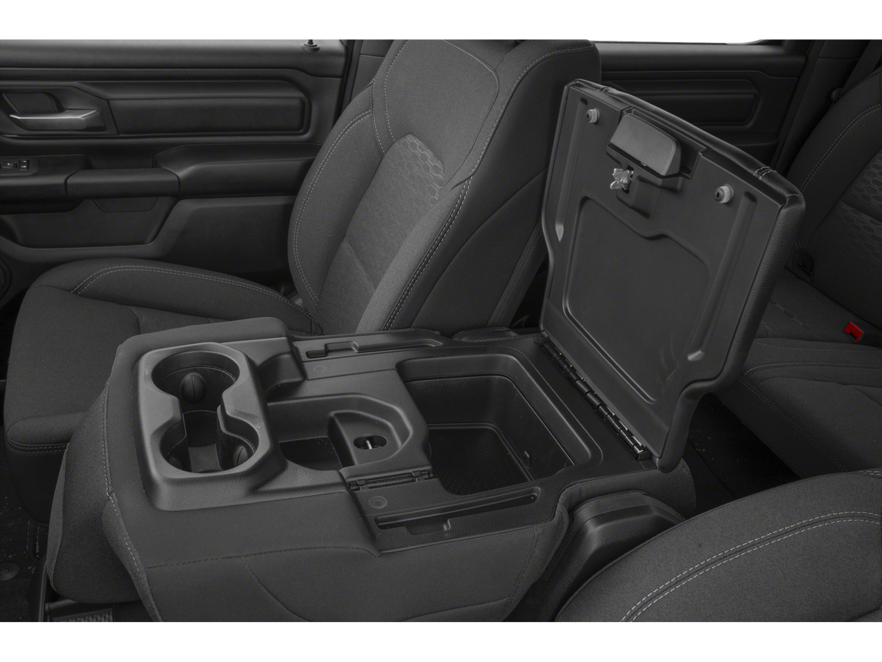 2nd Row In Floor Storage Bins, 3 Rear Seat Head Restraints, 3.21 Rear Axle Ratio, 3.55 Rear Axle Ratio, 4 Way Front Headrests, 4-Wheel Disc Brakes, 40/20/40 Split Bench Seat, 400W Inverter, 6 Speakers, ABS brakes, Air Conditioning, AM/FM radio, Anti-Spin Differential Rear Axle, Apple CarPlay/Android Auto, Auto High-beam Headlights, Bed Utility Group, Black Exterior Mirrors, Black Interior Accents, Body Color Front Bumper, Body Color Rear Bumper w/Step Pads, Brake assist, Cloth Bench Seat, Compass, Delay-off headlights, Driver door bin, Dual front impact airbags, Dual front side impact airbags, Electronic Stability Control, Exterior Mirrors w/Heating Element, Front & Rear Floor Mats, Front anti-roll bar, Front Center Armrest, Front Center Seat Cushion Storage, Front LED Fog Lamps, Front License Plate Bracket, Front reading lights, Front Seat Back Map Pockets, Front wheel independent suspension, Fully automatic headlights, Grille Black Surround Black Mesh, Heated door mirrors, Heavy Duty Vinyl 40/20/40 Split Bench Seat, Illuminated entry, Low tire pressure warning, Manual Adjust 4-Way Driver Seat, Manual Adjust 4-Way Front Passenger Seat, Manual Folding Exterior Mirrors, MOPAR 4 Adjustable Cargo Tie-Down Hooks, Mopar Black Tubular Side Steps, MOPAR Deployable Bed Step, MOPAR Front & Rear Rubber Floor Mats, MOPAR Spray In Bedliner, Night Edition, Occupant sensing airbag, Outside temperature display, Overhead airbag, Overhead console, Panic alarm, ParkView Rear Back-Up Camera, Passenger door bin, Passenger vanity mirror, Pick-Up Box Lighting, Power door mirrors, Power steering, Power windows, Quick Order Package 23A Tradesman, Radio data system, Radio: Uconnect 5 W w/8.4 Display, Rear 60/40 Folding Seat, Rear anti-roll bar, Rear Power Sliding Window, Rear step bumper, Remote keyless entry, Seat Parts Module II, SiriusXM Satellite Radio, Speed control, Tachometer, Telescoping steering wheel, Tilt steering wheel, Traction control, Tradesman Level 1 Equipment Group, Variably intermittent wipers, Voltmeter, Wheels: 18 x 7.5 Steel Painted, Wheels: 18 x 8.0 Black Painted Aluminum.