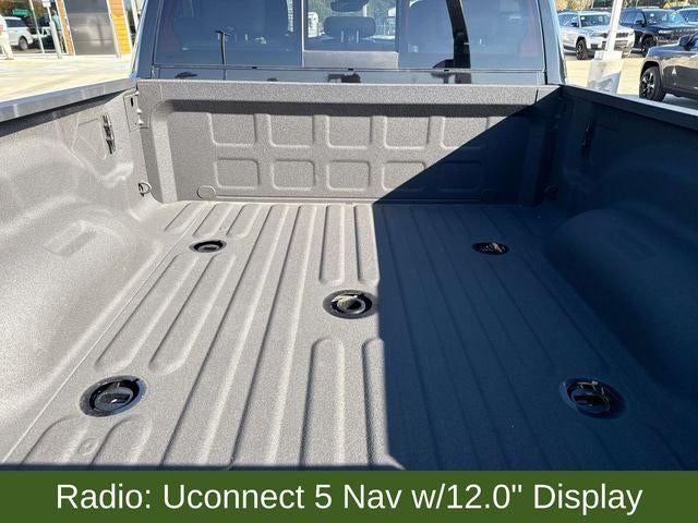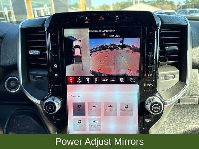 115V Auxiliary Front Power Outlet, 115V Auxiliary Rear Power Outlet, 12 Touchscreen Display, 2 Way Rear Headrest Seat, 2nd Row In Floor Storage Bins, 4 Way Front Headrests, 400W Inverter, 4G LTE Wi-Fi Hot Spot, 6 Speakers, 9 Alpine Speakers w/Subwoofer, Active Lane Management System, Adaptive Steering System, Air Conditioning ATC w/Dual Zone Control, Alexa Built-In, Anti-Spin Differential Rear Axle, Apple CarPlay, Auto High Beam Headlamp Control, Auto Power-Folding Mirrors, Auto-Dimming Rear-View Mirror, Big Horn Level 2 Plus Equipment Group, Black Exterior Mirrors, Blind Spot & Cross Path Detection, Bucket Seats, Connected Travel & Traffic Services, Connectivity - US/Canada, CTR Stop Lamp w/Cargo View Camera, Dampened Tailgate, Disassociated Touchscreen Display, Drowsy Driver Detection, Dual Glove Boxes, Dual Wireless Charging Pad, Emergency Vehicle Alert System (EVAS), Exterior 115V AC Outlet, Exterior Mirrors Courtesy Lamps, Exterior Mirrors w/Heating Element, Exterior Mirrors w/Supplemental Signals, Foam Bottle Insert (Door Trim Panel), Folding Flat Load Floor Storage, Footwell Courtesy Lamp, Forward & Reverse Utility Lights, Front Seat Back Map Pockets, Full Length Upgraded Floor Console, Global Telematics Box Module (TBM), Glove Box Lamp, Google Android Auto, GPS Antenna Input, GPS Navigation, HD Radio, Heated Front Seats, Heated Steering Wheel, Integrated Voice Command w/Bluetooth®, LED Bed Lighting, LED Tail Lamps, Locking Lower Glove Box, Luxury Steering Wheel, Manual Adjust 4-Way Front Passenger Seat, Media Hub w/2 Charge Only USBs, Mirror Running Lights, MOPAR Deployable Bed Step, MOPAR Spray In Bedliner, Off-Road Info Pages, Power 2-Way Driver Lumbar Adjust, Power Adjust 8-Way Driver Seat, Power Adjust Mirrors, Power Adjustable Convex Aux Mirrors, Power Adjustable Pedals, Power Heated Folding Telescopic Mirrors, Power Telescoping Mirrors, Premium Cloth Bucket Seats, Quick Order Package 24Z Big Horn, Radio: Uconnect 5 Nav w/12.0 Display, Rain Sensitive Windshield Wipers, Rear 60/40 Folding Seat, Rear Dome w/On/Off Switch Lamp, Rear Power Sliding Window, Red Tail Lamp Bezels, Remote Start System, Selectable Tire Fill Alert, SiriusXM Radio Service, SiriusXM w/360L, Steering Wheel Mounted Audio Controls, Sun Visors w/Illuminated Vanity Mirrors, Surround View Camera System, Traffic Sign Recognition, Trailer Reverse Guidance, Trailer Tire Pressure Monitoring System, Trailer Tow Pages, Universal Garage Door Opener.