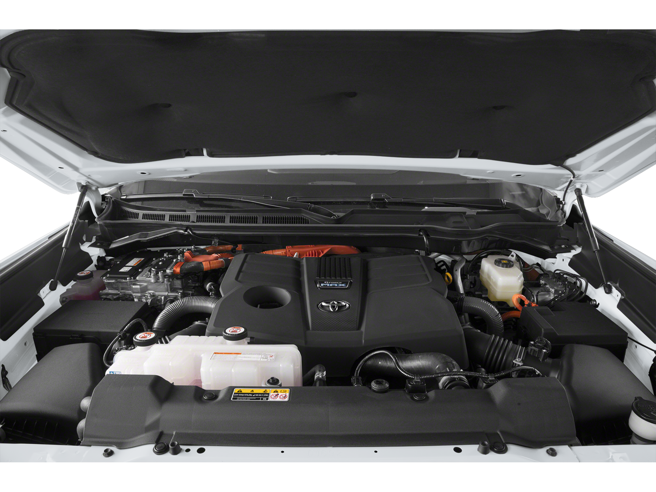 Beneath the striking black exterior lies a 3.4L V6 hybrid powertrain that seamlessly blends power and efficiency, delivering an outstanding 20 city/24 highway MPG. With 4WD capability and a 10-speed automatic transmission, this Tundra Hybrid is ready to tackle any terrain or towing task with confidence.