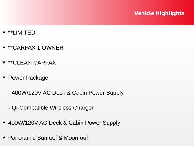 Meticulously crafted with your needs in mind, the Tundra Limited offers an array of premium features that elevate your driving experience. Key highlights include: